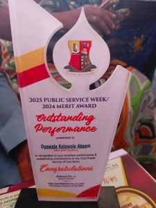 ‎The recognition was presented during the 2025 Public Service Week and Merit Award ceremony held at the House of Chiefs, Agodi Secretariat, Ibadan.