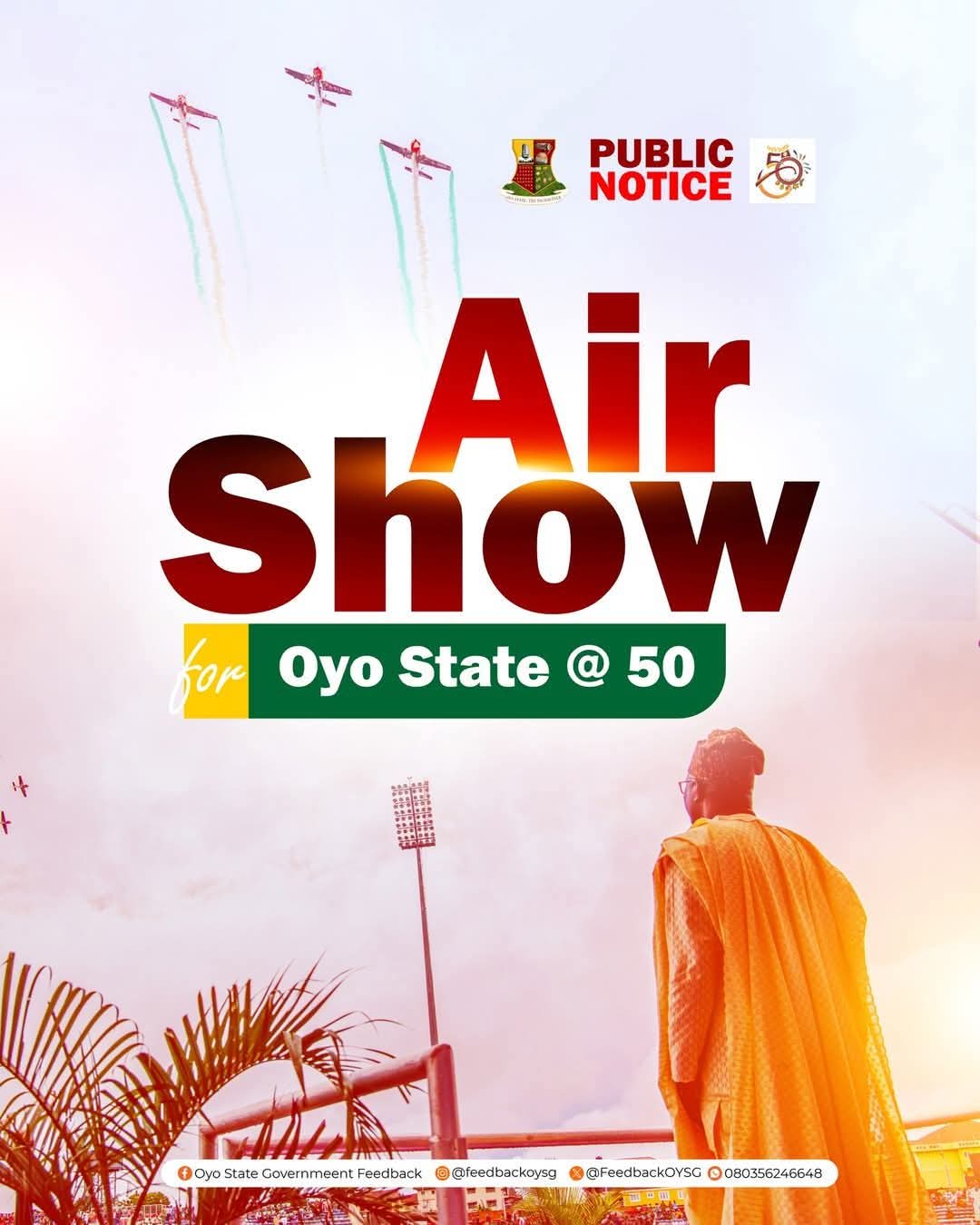 The air show, expected to take place over key parts of the Ibadan metropolis, is designed to add colour and excitement to the anniversary celebrations.