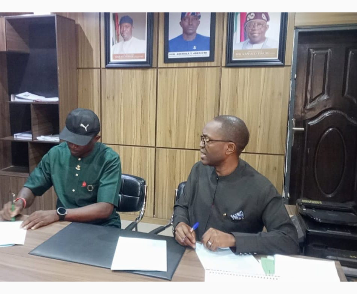 The Honourable Commissioner, Hon. Ademola Aderinto, signed the contract with Mr. Oluwasegun Ademuwagun, the Managing Director of Noblesse Green Energy Limited, in his office.