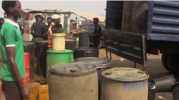 ‎During the operation, dozens of litres of Premium Motor Spirit (petrol) and diesel were found stored in 25-litre kegs and large drums, with numerous empty barrels and containers used for illegal storage and sale of petroleum products also discovered.