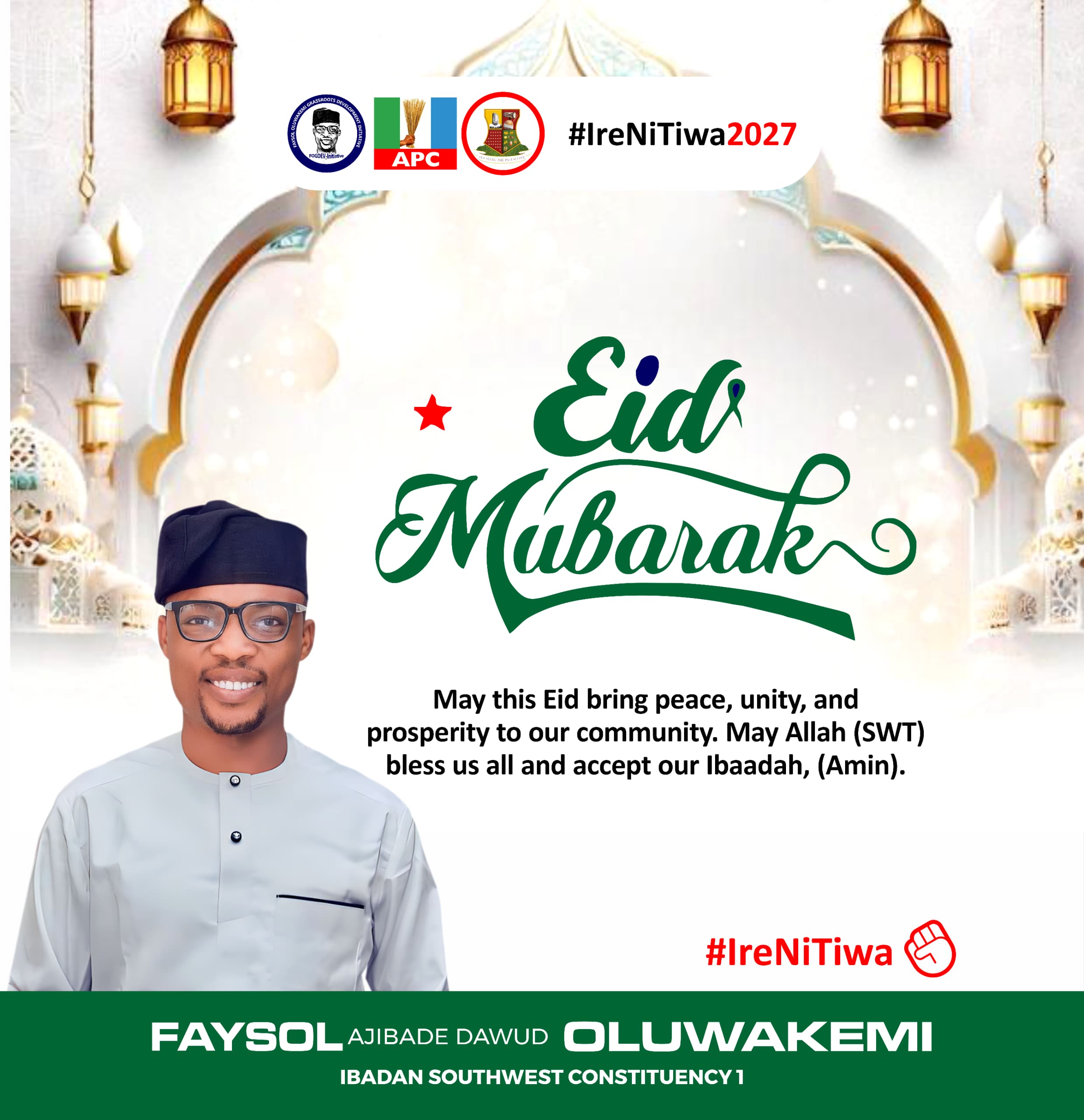 A grassroots development advocate and a Frontline aspirant for the Oyo State House of Assembly, Ibadan Southwest Constituency I, Hon. Faysol Oluwakemi, has felicitated Muslims on the successful completion of Ramadan and the celebration of Eid al-Fitr.