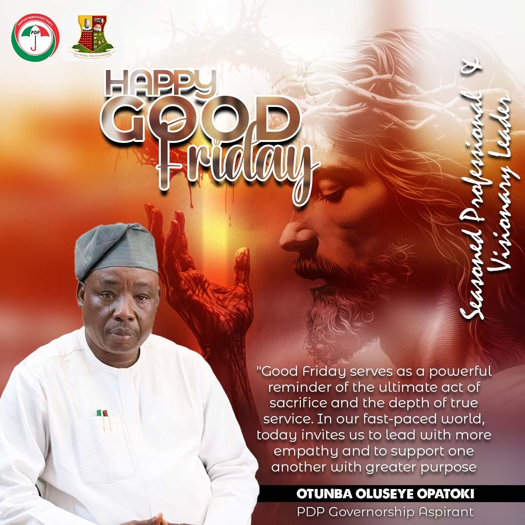 As Christians across Oyo State and the world commemorate Good Friday, a day that marks the crucifixion and sacrificial death of Jesus Christ, Otunba Oluseye Oladosu Opatoki, a prominent political leader and governorship aspirant for the 2027 elections in Oyo State, has extended his heartfelt felicitations to the good people of the state, urging them to imbibe the enduring lessons of love, sacrifice, and hope that the season represents.