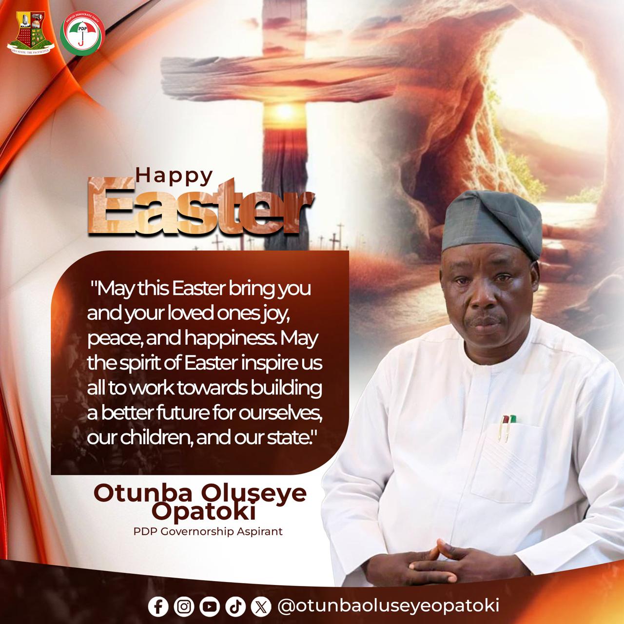 As Christians around the world celebrate the joyous occasion of Easter Sunday, Otunba Oluseye Opatoki, the governorship aspirant for Oyo State in the 2027 elections, has extended his warmest felicitations to the good people of Oyo State.