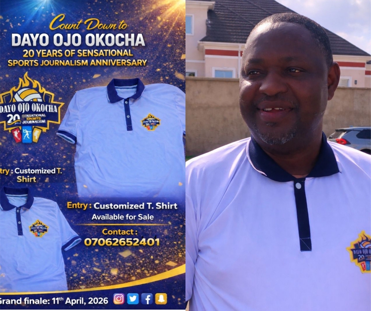 The organizers of Dayo Ojo Okocha 20 Years Sports Journalism Anniversary have unveiled the official T. Shirt for the grand finale of the event , slated for Saturday, April 11, 2026.