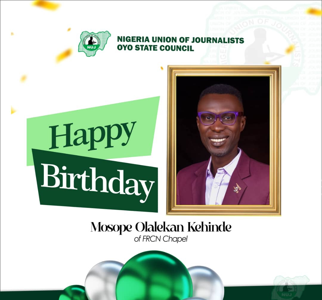 Nigeria Union of Journalists (NUJ), Oyo State Council, heartily congratulates Mr. Mosope Kehinde of FRCN Chapel on the occasion of his birthday.