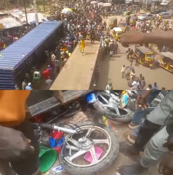 A tragic accident involving a trailer has been reported at the Molete Under Bridge area in Ibadan, Oyo State, after a container fell and crushed tricyclists, motorcyclists, and passersby.